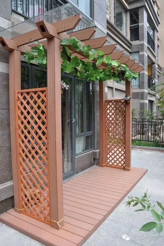 为爬藤类植物提供了一个生存和造型空间,无论是春天花开藤蔓,还是夏天葡萄串串,藤架是令人赞叹不已的装饰物。